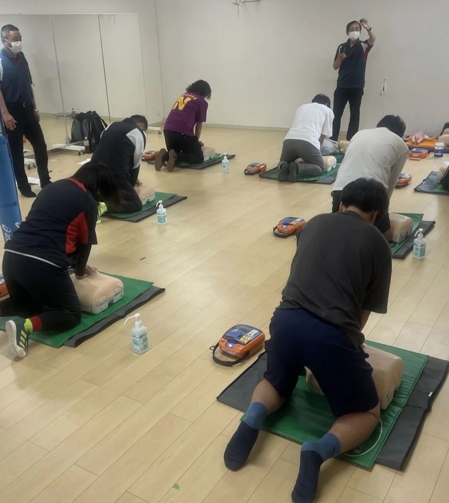 当社は他の事務所においても同様の救命講習の実施を義務付けており、また毎月1回の全社員研修にて季節ごとの応急救護に関する講習も実施しております。スポーツ指導に携わるすべての社員が応急救護に関する知識を身につけ、実践できるような体制を整備しております。