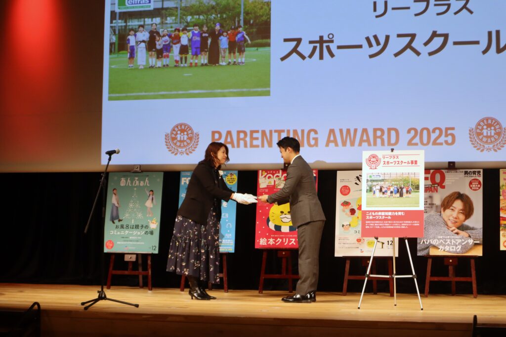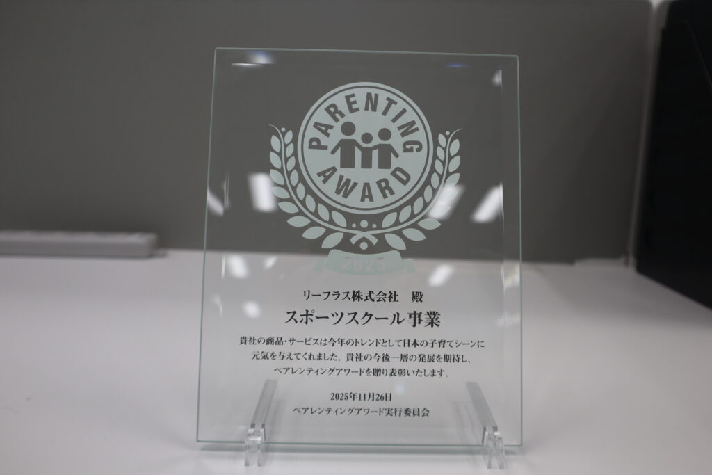 リーフラスが運営するリーフラススポーツスクールは、スポーツを通して子どもの非認知能力の育成に貢献した点を評価され、日本の子育てシーンに元気を与えたとして「モノ・サービス部門」を受賞しました。