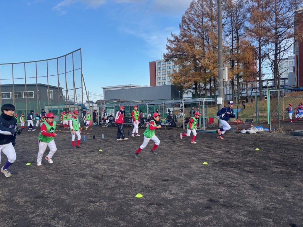 先⽇、ベースボールスクールポルテ札幌において、札幌⼤学野球部の皆さまをお招きして野球教室を実施いたしました。