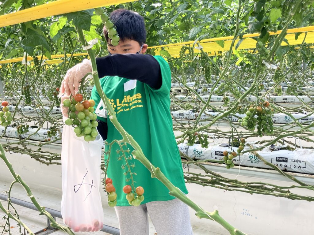 午後からはミニトマトの収穫ゲームや選果ゲームを⾏いました。