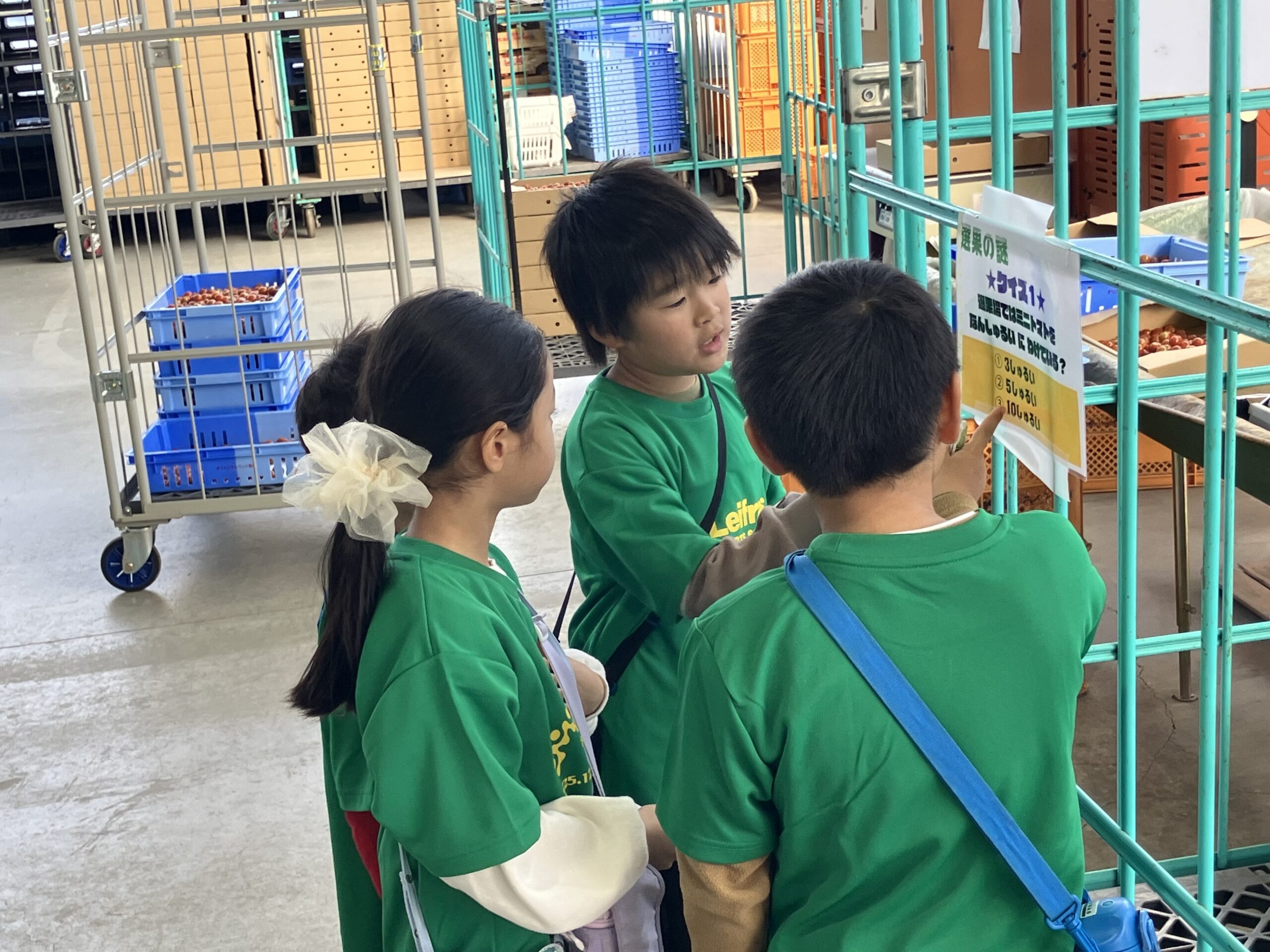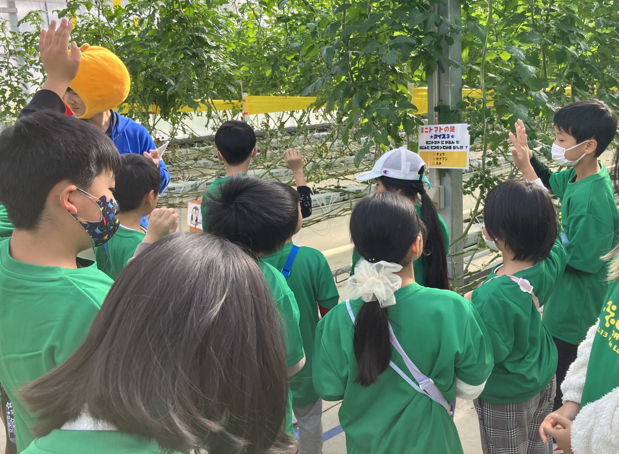 はじめに⼦どもたちはチームで農園内を探検しながら「ミニトマトの花粉を運ぶお⼿伝いをしてくれる⾍は何?「パプリカの花は何⾊?」「北杜農園は標⾼何メートルの⾼さにある?」などのクイズにチャレンジしました。