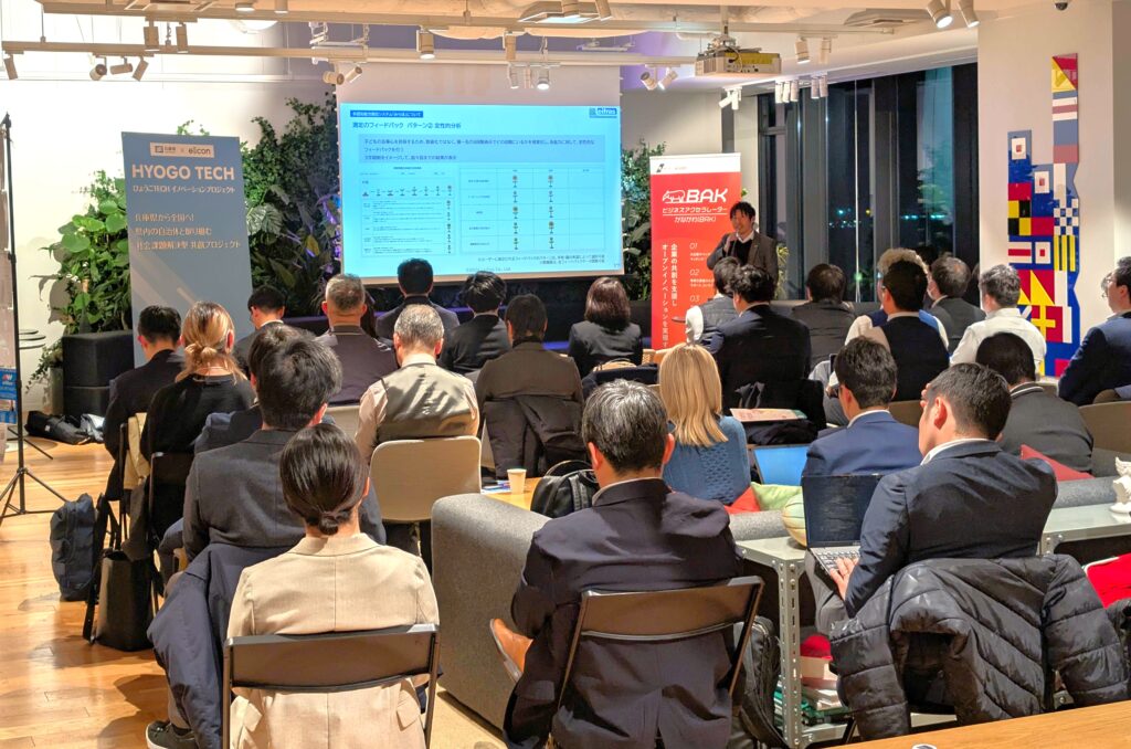 イベントでは、官民共創に関心のある参加者の皆さまに向けて、「みらぼ」の紹介や開発の経緯、非認知能力測定の成果や「ひょうごTECHイノベーションプロジェクト」の事例などを紹介しました。