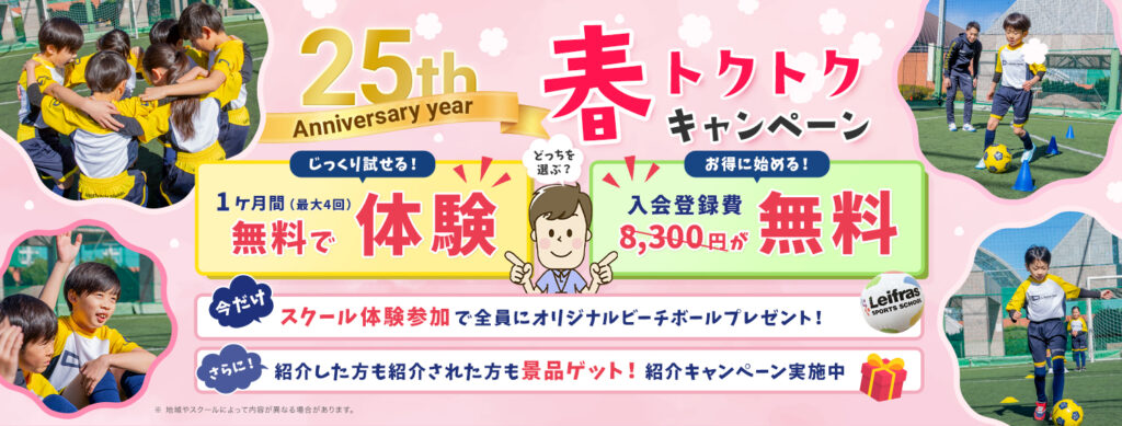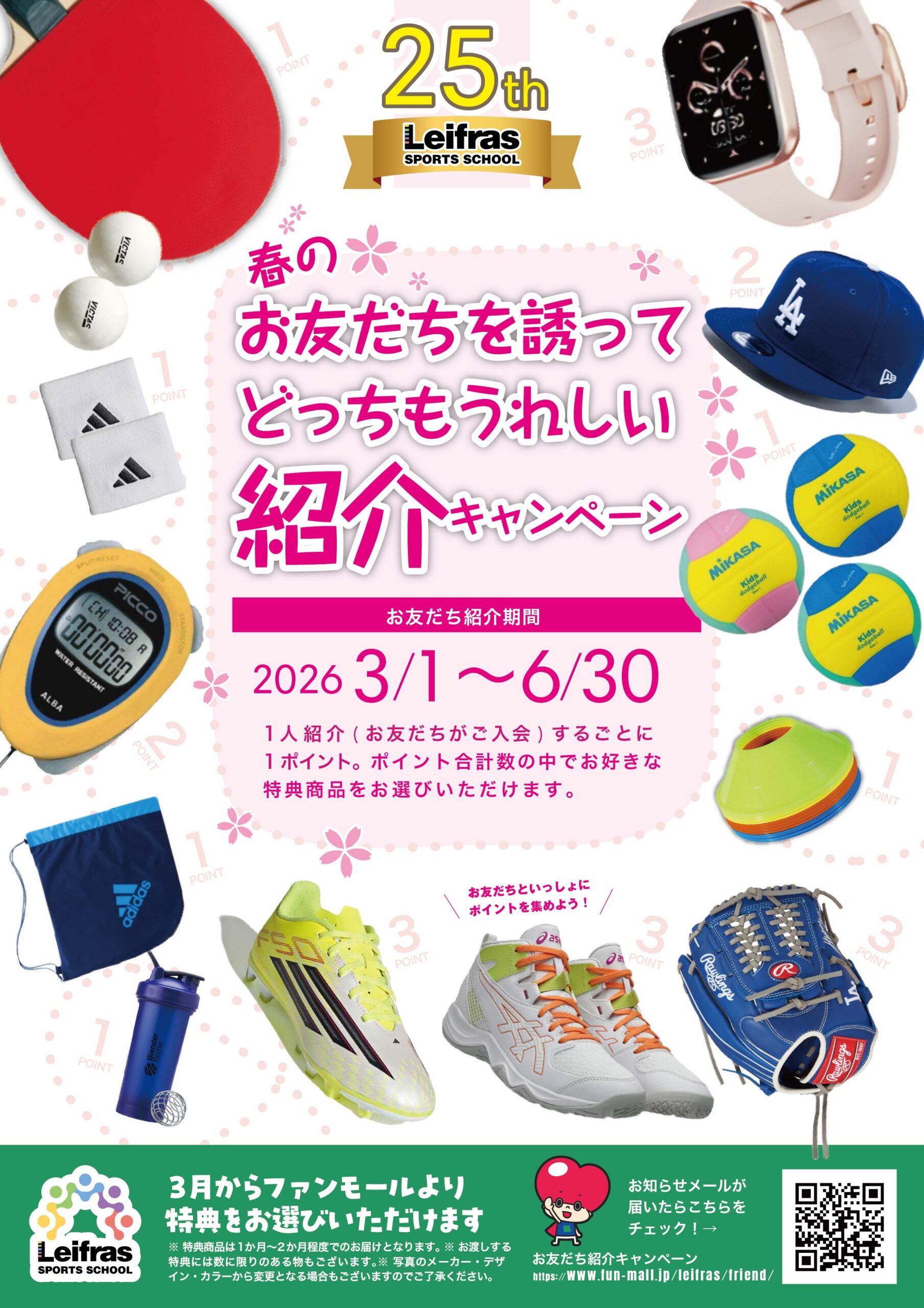 2026.03.10無料体験参加でプレゼント!紹介キャンペーンでさらに特典!リーフラススポーツスクール「春トクトクキャンペーン」のお知らせ